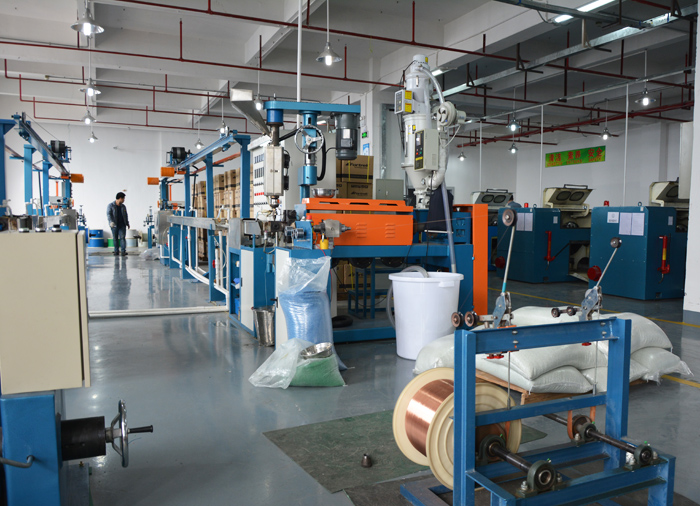 A device, use: suitable for PVC, PE, PU and other plastic extrusion, mainly used for electronic wire, network wire, power line, data line, high-frequency line insulation wire production, can also be used for small section production line sheath; replacement screw is suitable for low smoke halogen-free, nylon and other plastic extrusion. Two, the characteristics of the equipment: high configuration, the main electrical components imported original, the use of modern screw technology, the gear tooth surface hardened by high-frequency quenching and precision grinding, wear resistance. The equipment has the advantages of low energy consumption, large extrusion quantity, high production efficiency, high surface gloss, small temperature difference, low noise, good stability, strong continuity, convenient operation and long service life Three, equipment configuration: mainly composed of active line planes, preheating, straightening, the host (free transfer head), automatic suction machine and dryer, the electric equipment main control box, a movable tank, laser diameter measuring instrument, high speed printing machine, winding machine, wheel fixed tank, horizontal line storage rack, high frequency spark machine, biaxial take-up machine etc.. Optional PLC control, injection machine (for two-color line production), the specific configuration can be adjusted according to customer needs.